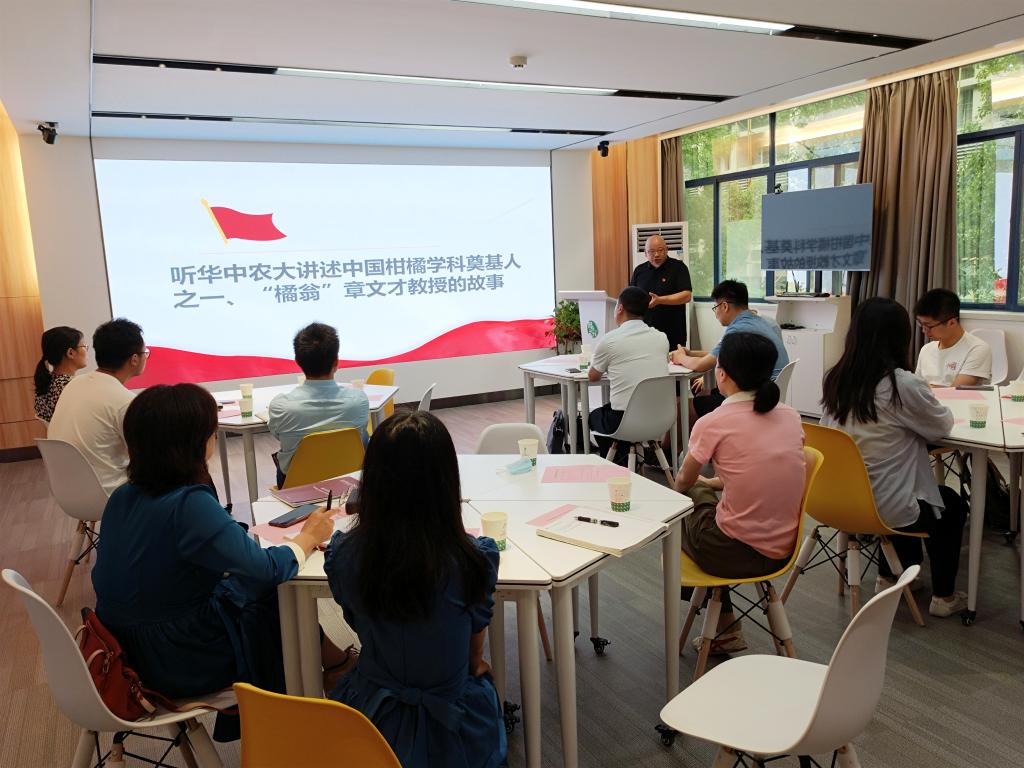 张斌教授与师生分享中国柑橘学科奠基人之一“橘翁”章文才教授的故事(周长剑 摄)