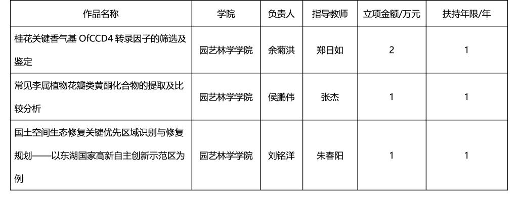 根据《华中农业大学本科生科技创新专项实施细则》(校发〔2014〕23号)有关规定和《关于申报2022年本科生科技创新专项的通知》(校青通〔2022〕9号)要求,经学生本人申请、学院推荐、学校专家组评审,学院有3个项目获得学校立项资助支持,具体项目信息如下: