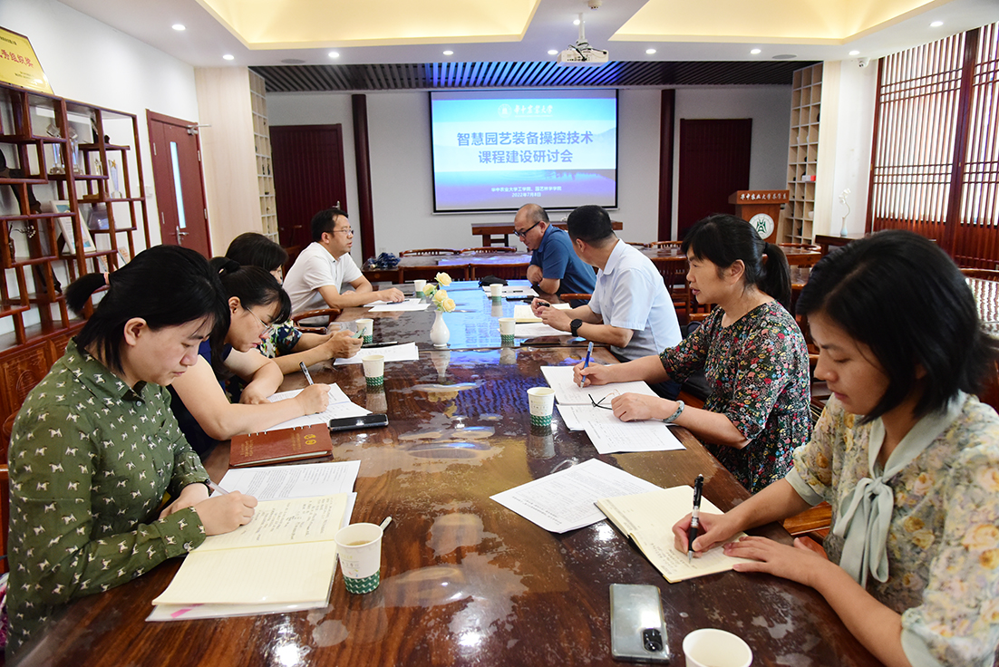 7月8日下午,园艺林学学院和工学院在园林北楼226耕读茶室召开《智慧园艺装备操控技术》课程建设研讨会。工学院鲍秀兰副教授、陈红副教授、刘洁副教授和园艺林学学院别之龙教授、王文恩研究员,本科生教务办和基地办老师参会,副院长周继荣主持会议。