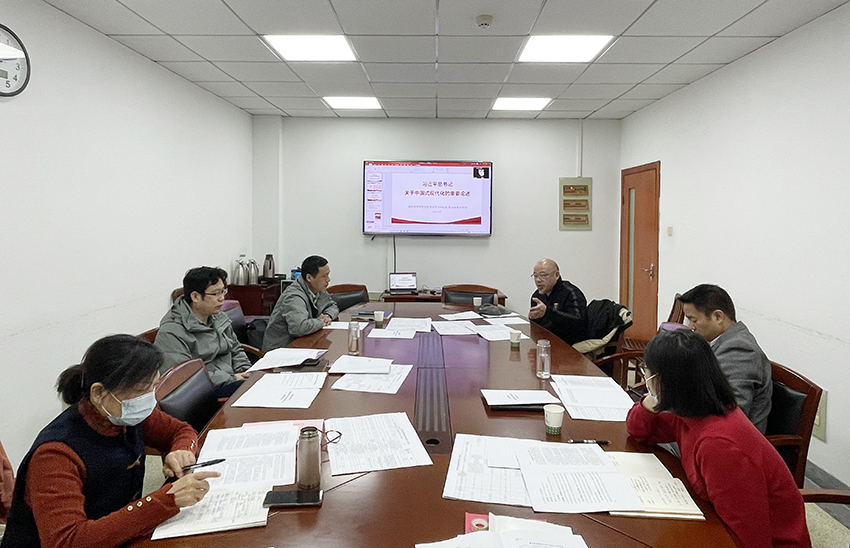 学院党委理论学习中心组成员经过前期自学,由张斌同志领学习近平总书记关于中国式现代化的重要论述。张斌围绕习近平总书记关于中国式现代化的重要论述、习近平总书记对中国式现代化的阐释、中国式现代化理论的新飞跃等三个方面的学习情况汇报了学习体会。张斌谈到,习近平总书记在参加党的二十大广西代表团讨论时指出:“中国式现代化扎根中国大地,切合中国实际。我们要始终把国家和民族发展放在自己力量的基点上、把中国发展进步的命运牢牢掌握在自己手中,坚定信心、守正创新,奋力谱写全面建设社会主义现代化国家新篇章”。他认为,习近平总书记中国式现代化重要论述的原创性贡献和重大意义具体体现在以下四个方面:一是实现了中国现代化理论新飞跃,为全面建设社会主义现代化国家指明了新道路;二是实现了对我们党现代化理论的继承性创新;三是指明了中国式现代化发展方向,擘画了中国式现代化发展蓝图,四是重构了世界现代化理论新谱系,为其他发展中国家开展现代化建设提供了新选择。
