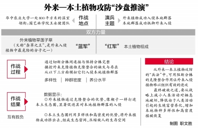 长江日报讯(记者周劼 通讯员蒋朝常)为什么有的外来植物能长驱直入,泛滥成灾,成为本土生态的巨大危害?因为它有“计谋”。为什么有的本土群落成功抵抗外来物种的入侵,保护了自己的栖息地?因为它有“策略”。日前,华中农业大学园艺林学院王永健团队发表最新成果,通过对外来—本土植物攻防之间的“沙盘推演”,他们找出了外来植物成功入侵本地群落和本地群落成功抵御外来入侵的“兵法之要”。