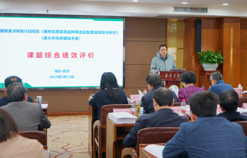 3月12日上午,由华中农业大学牵头担任的国家重点研发计划项目“果树优质高效品种筛选及配套栽培技术研究”课题综合绩效评价会议在华中农业大学国际学术交流中心五楼(第二)会议室顺利召开。农业农村部科技发展中心监督处处长付仲文、监督处专员黄永震、我校党委副书记、副校长姚江林、科学技术发展研究院常务副院长张拥军、重大项目管理处处长杨毅、项目主持人伊华林教授以及来自各单位的课题负责人和部分骨干成员出席了会议。评价会邀请了中国林业科学院裴东研究员任组长,山东农业大学教授陈学森、中国农业大学教授李天忠、上海交通大学教授王世平、农业农村部全国农技推广中心研究员李莉、四川农业大学教授汪志辉、湖北省农业农村厅研究员鲍江峰和江西农业大学教授陈金印等专家组成专家组对项目所属的5个课题进行了综合绩效评价。
