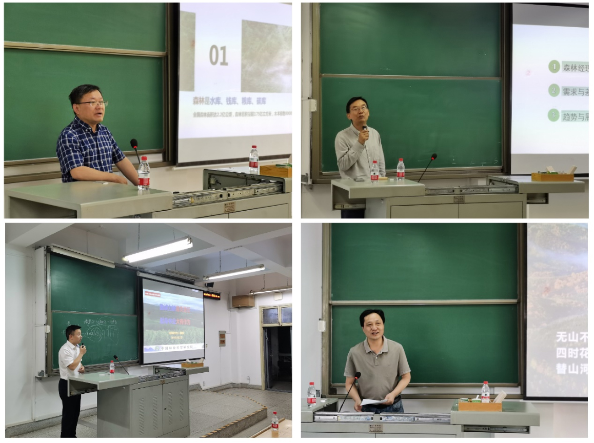在5月12日晚上进行的报告中,雷相东研究员做了题为“探秘森林经理科学研究,助力绿水青山就是金山银山”的报告。他从世界上有多少株树、这些树木有多高、最高的树木在哪里等问题开始,重点介绍了森林经理的研究实践内容与我国森林资源现状、需求、趋势与展望等内容,并对我国森林经理科研中形成的经验、不足和重点问题进行了介绍。报告结束后,雷相东老师就同学和老师们提出的相关问题进行了回答和交流。随后,林学校友田晓堃处长围绕中国林科院相关院所人才培养、研究生招生情况进行了生动介绍,并结合自身经历,鼓励在座同学扎实培养林业科学研究的综合能力和前沿视野,响应国家生态文明建设战略,积极投身绿水青山就是金山银山理论实践。