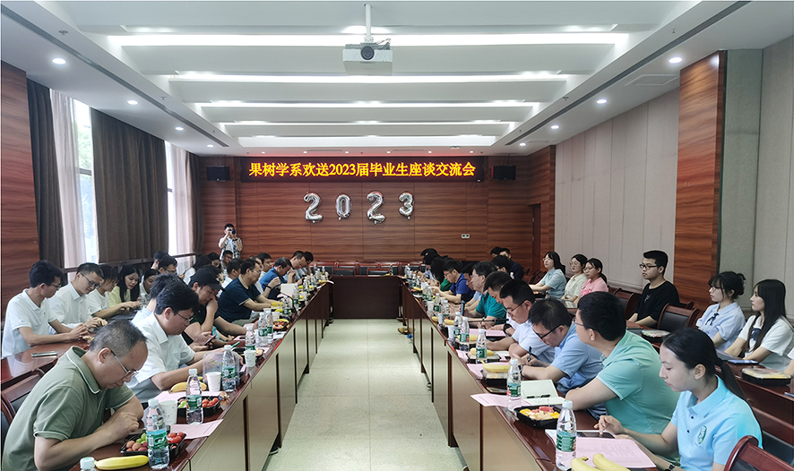 忆往昔,展未来。6月22日上午,果树系欢送2023届毕业生座谈交流会在园艺林学学院南楼204会议室举行。中国工程院副院长、中国工程院院士、园艺学科带头人邓秀新教授,学院党委书记张宏荣,院长程运江教授,党委副书记林辉,果蔬园艺作物种质创新与利用全国重点实验室副主任卢刚,果树系全体在校教师,毕业本科和研究生代表等60余人参加会议。