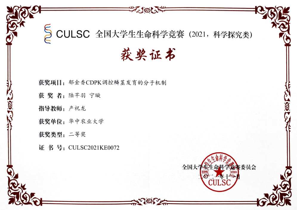 ⑩全国大学生生命科学创新创业大赛优秀成果三等奖,生命科学竞赛二等奖(学生获奖)