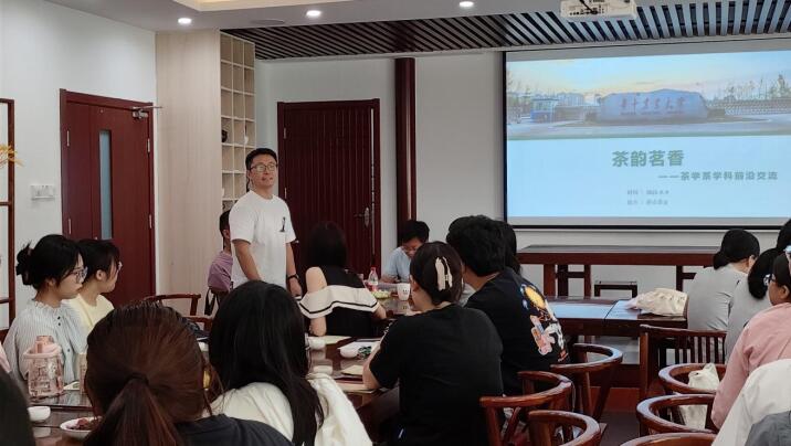 2023年9月9日下午14:30,园艺林学学院茶学系2023级研究生新生在园林北楼226耕读茶室开展了“茶韵茗香—茶学系学科前沿交流”主题活动,活动主要由茶学系2023级茶学班班委等人承办,出席人员包括茶学系赵华、闻玮玮、郭飞、余志、张德、王霞等六位老师以及2023级茶学系全体研究生。