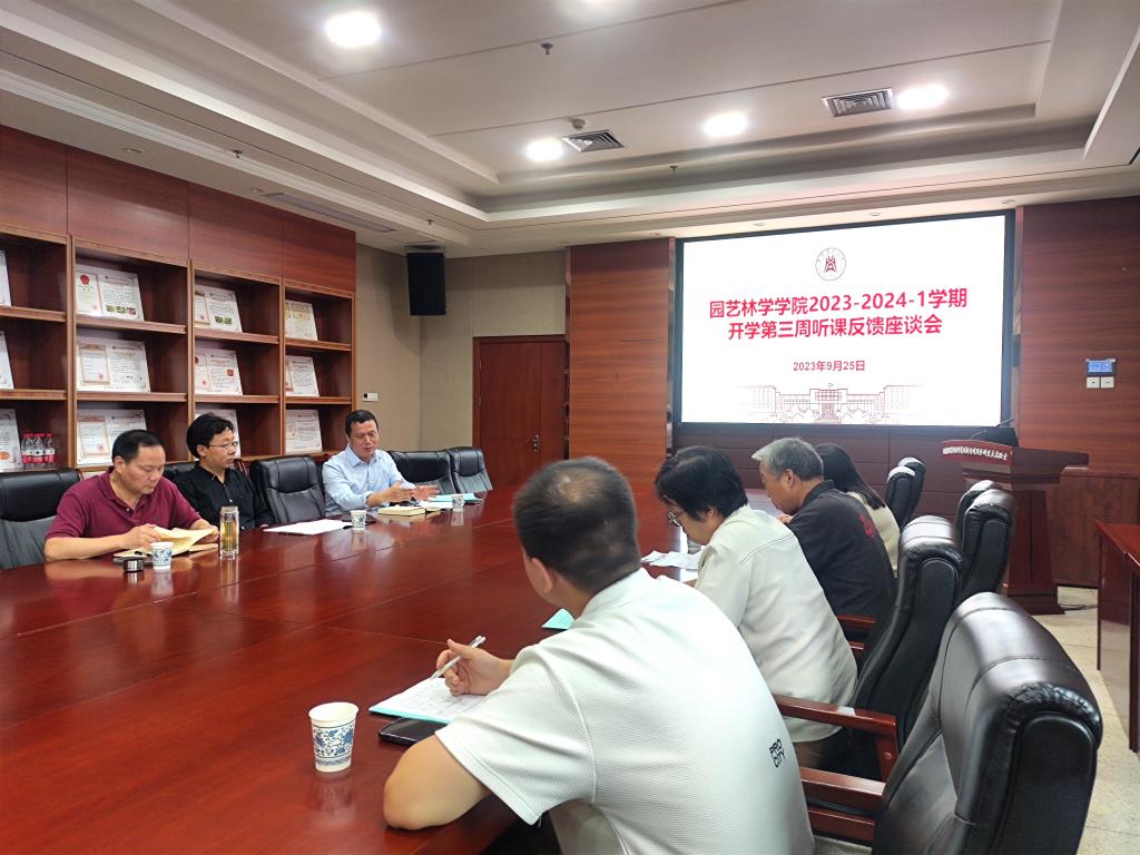 9月25日下午,园艺林学学院在南楼206会议室召开2023级本科生和研究生开学第一课听课反馈座谈会,听课和授课教师代表,教学督导,本科生和研究生教务办负责老师参会,副院长周继荣主持会议。
