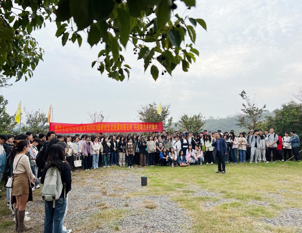 10月28日上午,园艺林学学院党委副书记林辉带队,襄阳襄城桃花岭晚熟桃科技小院技术服务专家刘军伟副研究员具体负责,带领正在襄阳书院学习的192名来自蔬菜、茶学、园林和设施与智慧园艺专业的2023级硕士研究生,前往襄城区尹集乡姚庵村桃花岭生态园,开展了题为《桃花岭上“红色桃”》的专业实践教学和耕读教育课程。