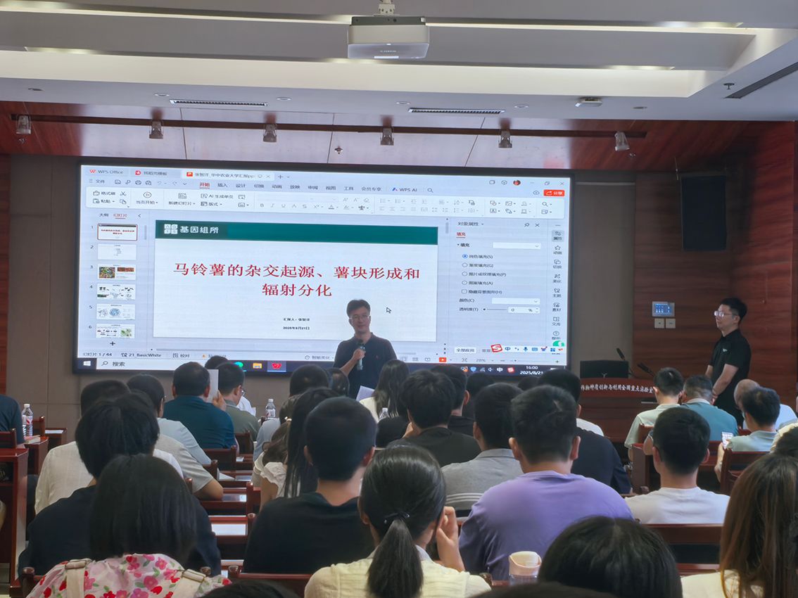 2025年8月21日,中国农业科学院深圳农业基因组研究所张智洋博士在园林南楼204报告厅开展学术讲座,围绕“马铃薯的杂交起源、薯块形成和辐射分化”这一主题,给学院师生带来了精彩的学术报告。报告由学院院长、果蔬园艺作物种质创新与利用全国重点实验室主任徐强教授主持,110余名师生参加。