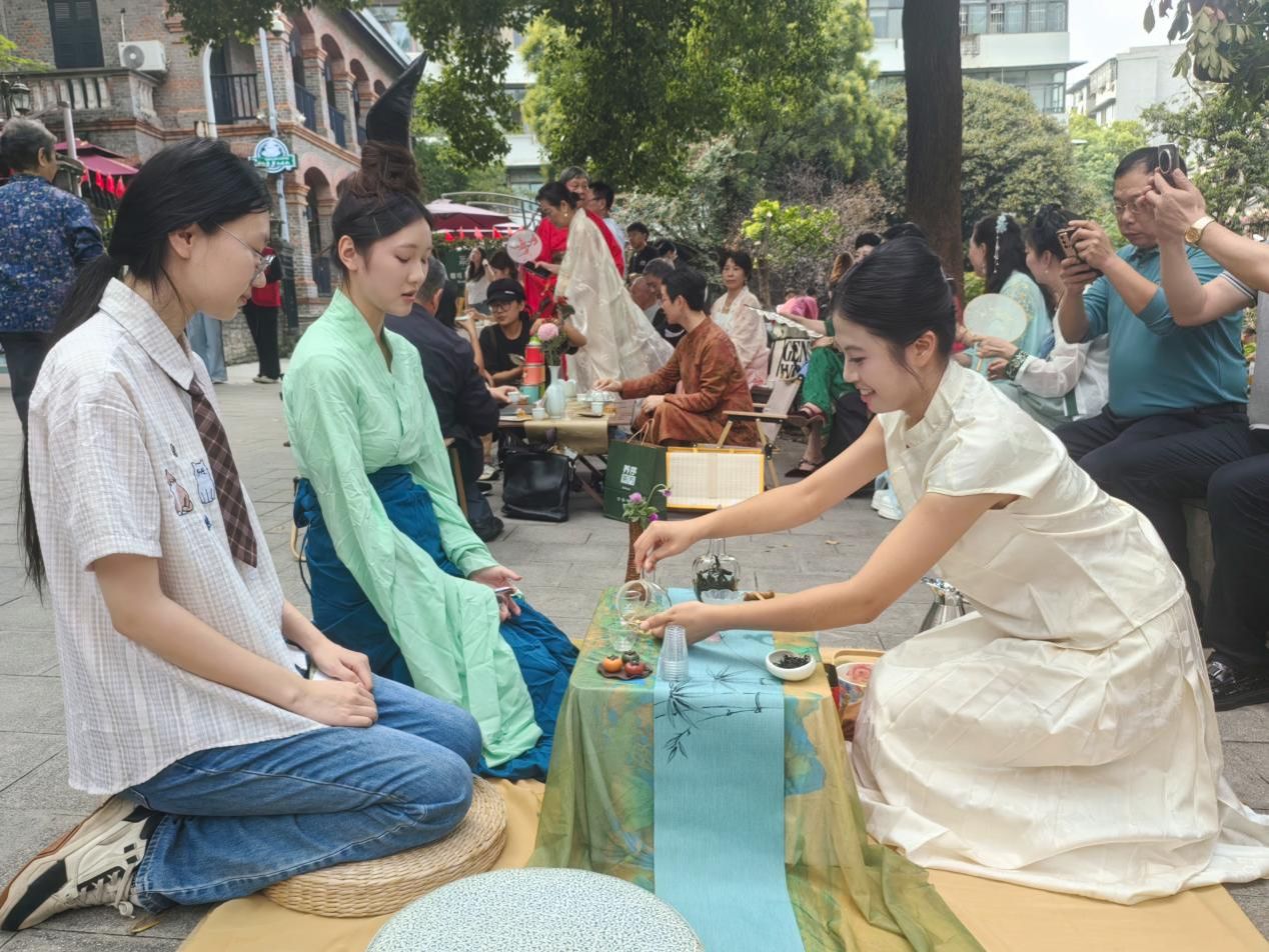 为共庆中秋佳节,弘扬中国茶文化,武汉茶艺馆行业协会联合昙华林社区等单位于9月28日在昙华林历史文化街区举办中秋茶会。本次茶会以“华林茶香映明月,江城茶韵共团圆”为主题,邀请武汉市茶艺馆行业协会、湖北大学生茶艺学社高校联盟等单位成员参与。我院茶学2301班六名学子代表我校主动报名参加茶席布置与志愿者工作,将专业所学运用到实践活动之中。