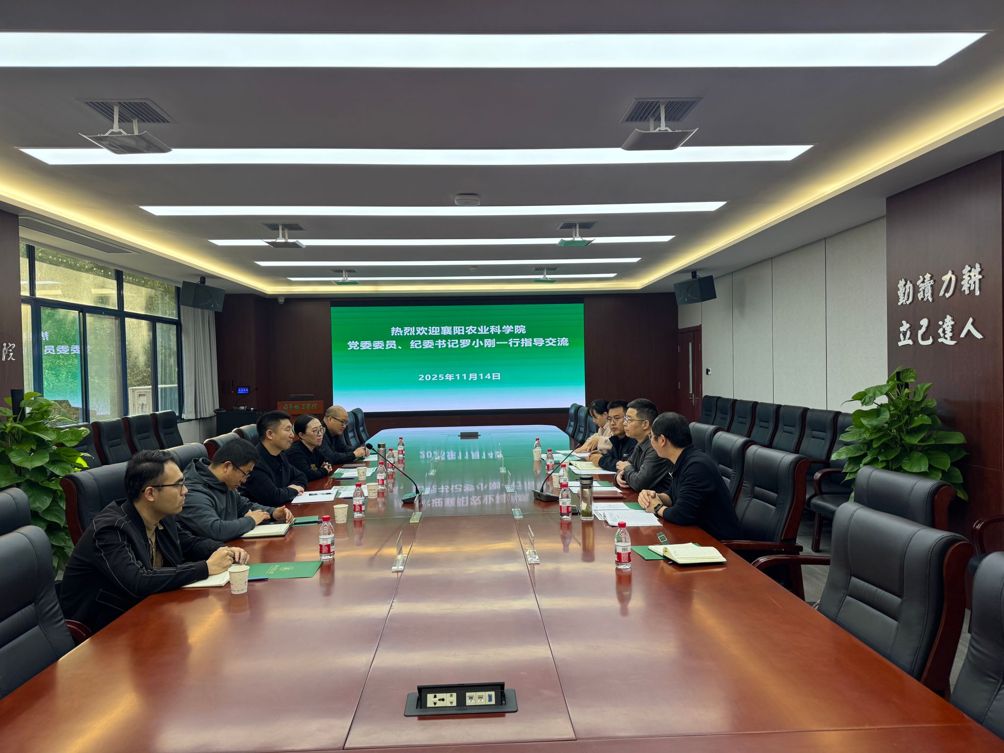 11月14日上午,襄阳市农业科学院党委委员、纪委书记罗小刚一行来院调研交流。学院党委书记龙健飞热情接待了罗小刚一行并举行座谈交流。