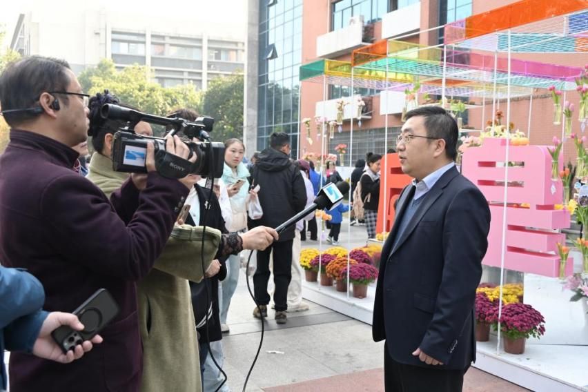 学院副院长张飞教授在现场接受媒体采访(程玉华 摄)