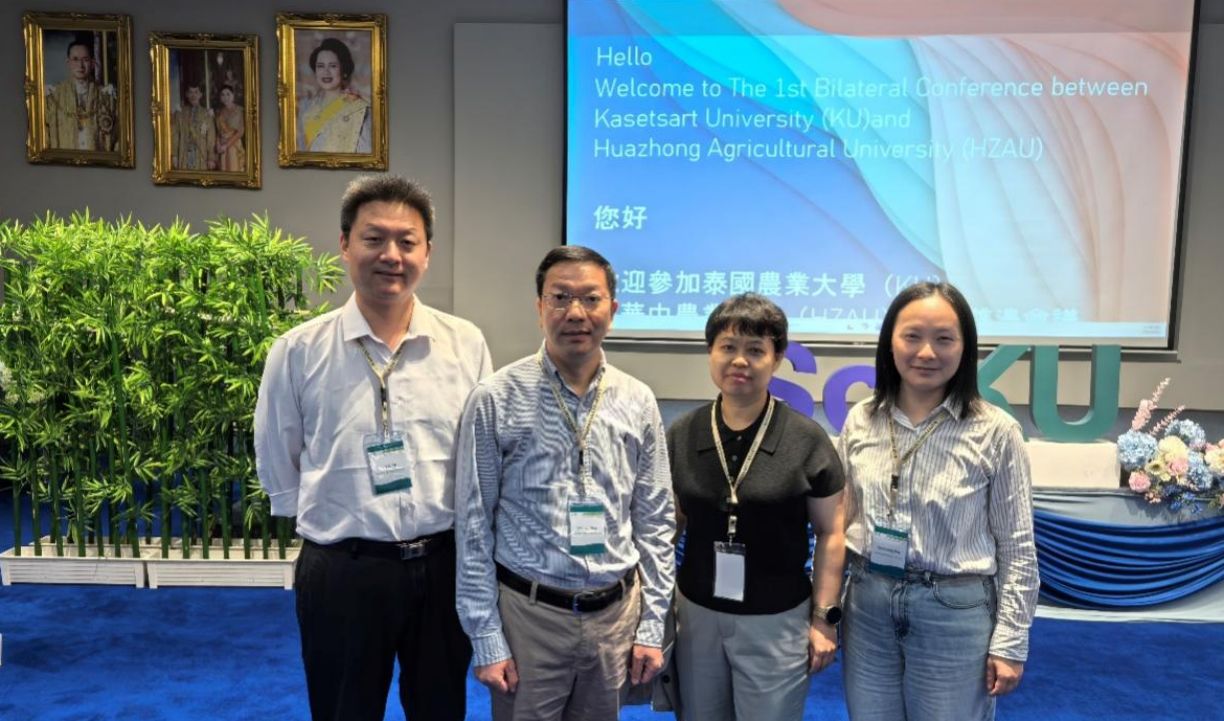 2026年1月29日至31日,华中农业大学(HZAU)与泰国农业大学(KU)在曼谷召开首届双边学术研讨会(The 1st Bilateral Conference between Kasetsart University and Huazhong Agricultural University)。我校园艺林学学院郭文武、徐娟、伍小萌、余志4位教师连同王滑、王飞燕等正在泰国农业大学进行短期学习交流的园林师生共39人一同参会。会议主题为“创新型协同增效,共建韧性农业”(Innovative Synergies for Resilient Agriculture: Navigating Agroecology, One Health, and Food Innovation in an Era of Trade Dynamics)。