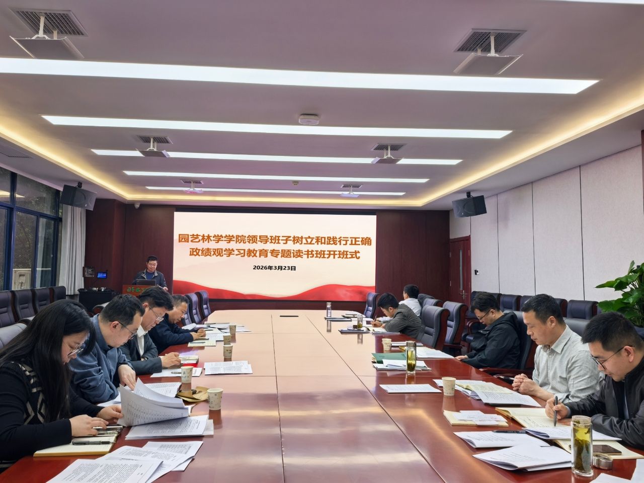 3月23日下午,园艺林学学院领导班子树立和践行正确政绩观学习教育专题读书班在园林北楼219会议室举行开班仪式。学院党委书记龙健飞主持会议,学院领导班子成员、党委理论学习中心组成员参加会议。