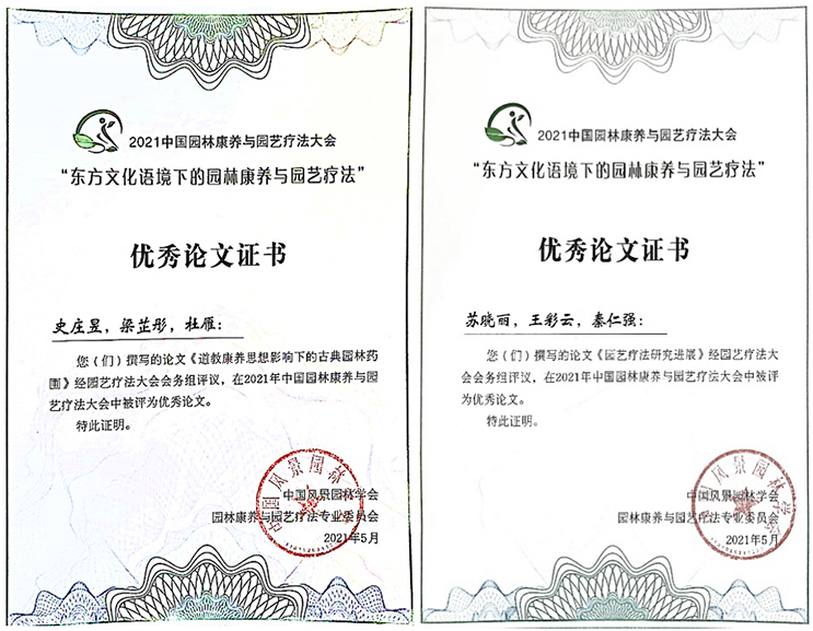 同时我院其他几位师生也参与了此次大会,其中马兆成老师以及荣获大会优秀论文的在读博士生苏晓丽同学、硕士生史庄昱同学在“园林康养与园艺疗法的科学研究”专题论坛上作精彩汇报和交流问答。