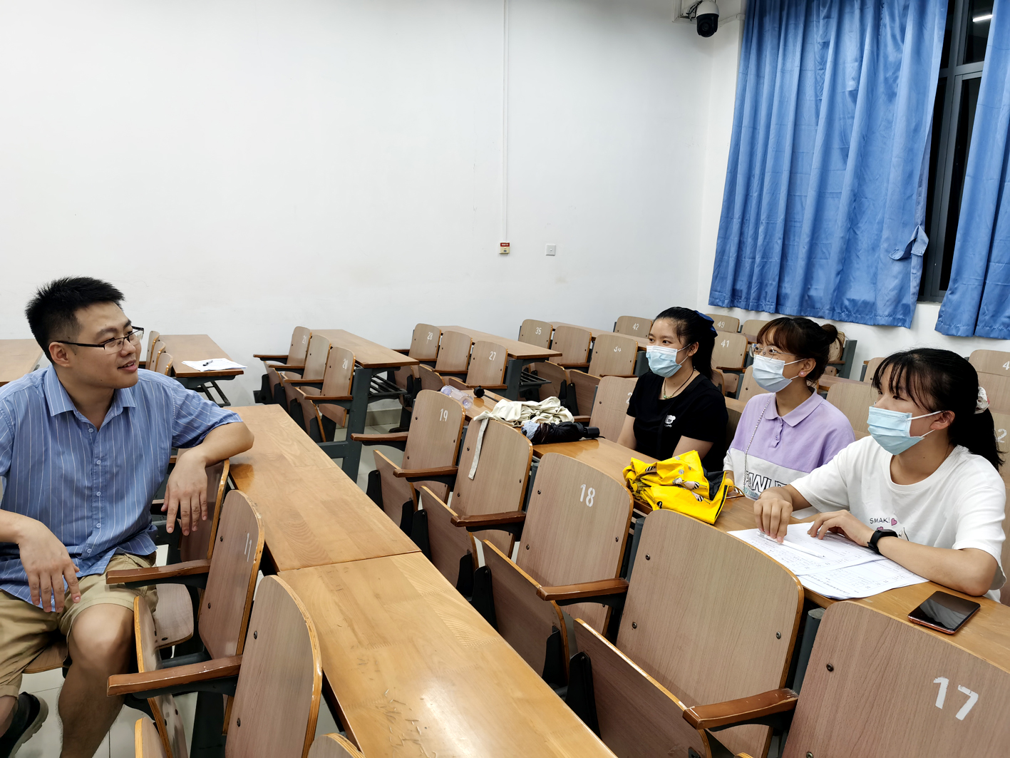 王鹏蔚老师与学生深入交流假期见闻(克木摄)