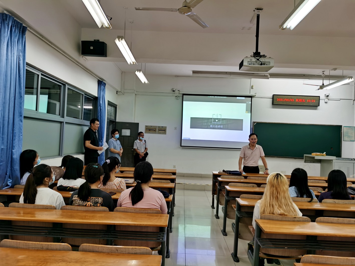 2021年9月3日晚7点,园艺林学学院2018-2020级本科生班级召开新学期收心班会,副校长杨少波、本科生院实践教学管理处处长刘震、园艺林学学院党委书记张宏荣、院长程运江、党委副书记蔡江、副院长王鹏程、张斌,院长助理张俊红、刘秀群、王鹏蔚一行,深入走访学生班会现场,亲切慰问返校学生。