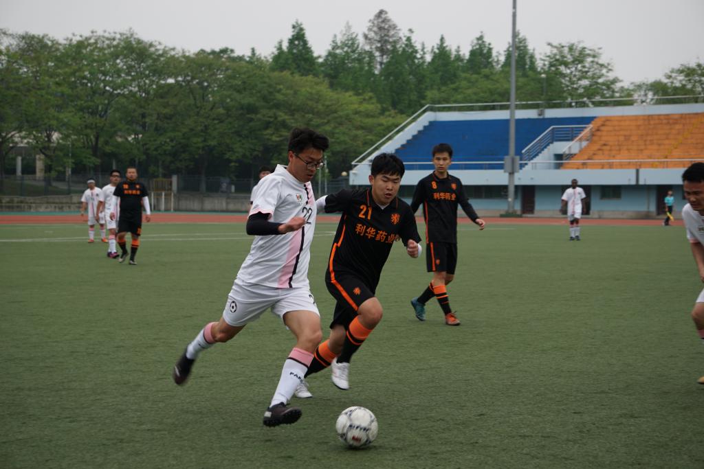 落于下风的动科动医学院在这种情况下,向园艺林学学院发起更加猛烈的攻势。双方势均力敌,在36分钟时,园艺林学学院22号王洵在三人围堵下,成功突围;39分钟时动科动医学院19号雷铭楷,连过两人。在你来我往之间,从球员们的身上,我们看到了熟练的技术和坚韧的精神,惹人阵阵叫好。至此,上半场比赛以园艺林学学院男足1:0领先动科动医学院男足结束。