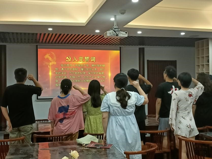 会议的主要内容分为两部分,首先由张陆玉同志带领全体党员重温入党誓词并热烈庆祝中国共产党成立一百零一周年。2022年7月1日,我们迎来中国共产党的101岁生日。历尽百年沧桑跨越雄关漫道,我们党依旧风华正茂、生机勃发!承载先辈希冀,肩负人民嘱托,我们党正团结带领全国各族人民,坚定地走在充满希望的复兴之路上。2022年,是党和国家事业发展中极为重要的一年。我们党将召开中国共产党第二十次全国代表大会,这是党和国家政治生活中的一件大事,是全党全国各族人民的历史性盛会。支部党员们表示作为青年党员,要以强农兴农为己任,不忘初心,以优异的成绩迎接党的二十大胜利召开。