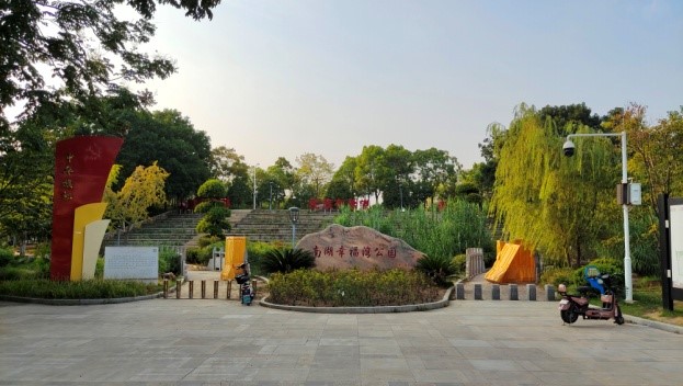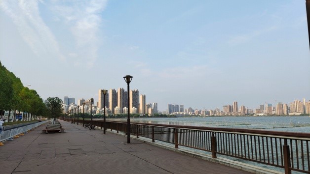 本次实践活动中,我们踏访了南湖华农段、玫瑰湾段及幸福湾水上公园段,发现南湖沿岸设置有垃圾桶及“禁止放生,禁止垂钓,禁止游泳”的指示牌,岸边无垃圾,水体无明显腥臭味,浅水区可见清晰的水草,傍晚有不少居民在湖边散步健身,他们表示,南湖岸近年来水质越来越好了,湖岸线越发美丽,在南湖边散步很舒适。自大南湖水质提升工程开展以来,湖滨公园、文馨街步行栈桥、华农大南湖绿道、中南大南湖绿道等环湖路段成为附近居民及高校学生的观湖亲水平台,实现了环境治理和景观提升的结合。