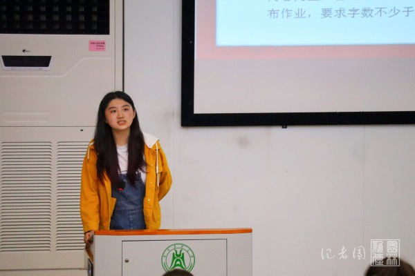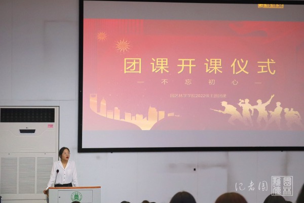 活动伊始,学院组织部负责人刘子璇受邀发言,强调了团课的考核纪律及要求,并带领全体新生重温入团誓词。她表示,希望同学们严格遵守团课的纪律,认真学习团课的相关知识,做一名合格的共青团员。