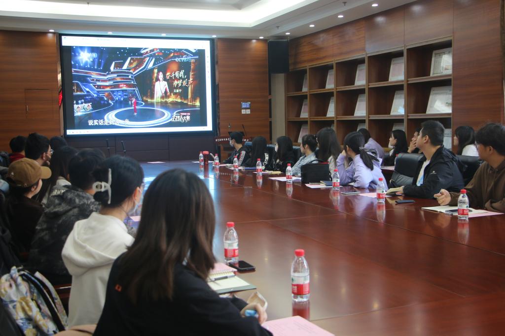 其后,主持人组织大家一起观看《中央广播电视总台2019主持人大赛》新闻类决赛片段。王嘉宁说到:“我们更是传播者,要走得远、贴得近、访得深 、评得准,让这份传播更有价值。” 邹韵也提到:“付出多少努力,就有多少底气。”两位主持人丰富多彩的记者生活和经历成就了不一样的她们,让她们站在这个舞台上更加自信和坚定。