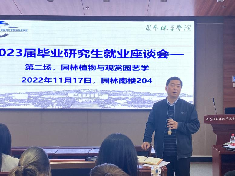 11月17日下午4点,华中农业大学园艺林学学院园林相关专业就业育人座谈会于园林南楼204会议室举行。园艺林学学院园林系主任产祝龙、辅导员肖晗及部分2023届毕业研究生参会。