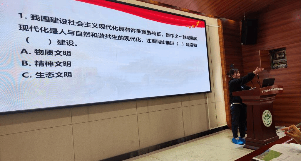 本周理论学习的最后环节主要围绕社会主义生态文明建设的内容,开展了知识竞答,学院党建办将最新一期的《求是》杂志作为奖品发放给同学们。