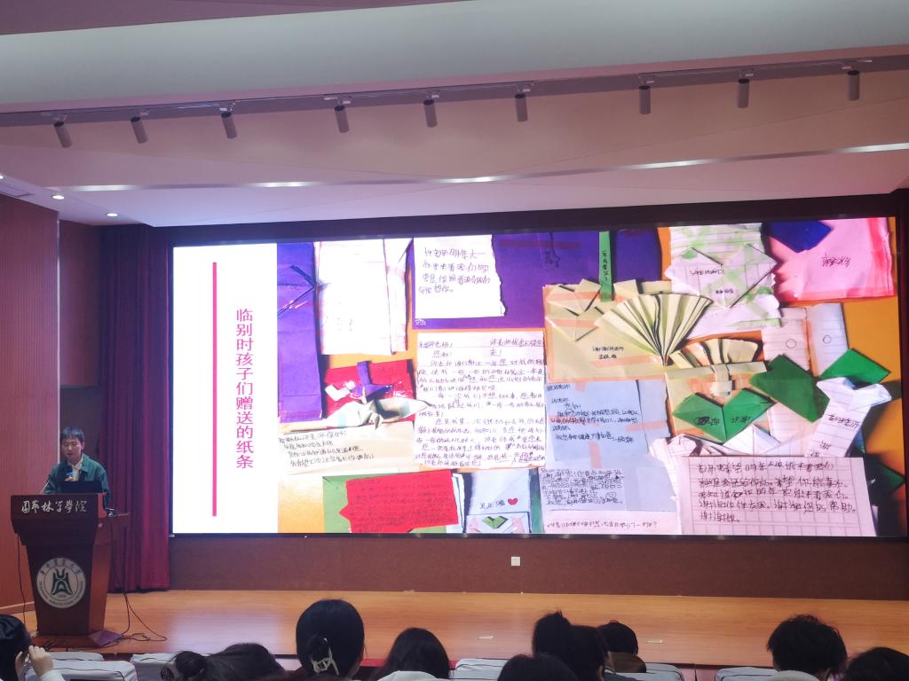 华中农业大学第17届研究生支教团志愿者许欢通过几组图片分享了他的支教故事。“老师您很严格,我犯了点小错误都会被您教育,一开始真的很恨您,但到后面明白了,也不恨您,天天想和您在一起,我也越来越喜欢上您的课,但时间已经没了。”一位小朋友在他们离开的那天塞给了他这样一张纸条,听到这里,现场的同学们不禁潸然泪下。许欢在最后谈道:“这一年,我想我教会了孩子们做一个努力且善良的人,于我而言,这比成绩提高更有意义。”