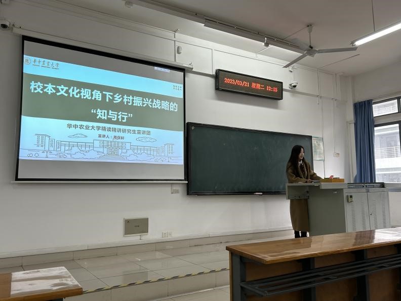 3月21日,林茶本科生党支部开展党的二十大精神“精读精讲”活动,研究生“精读精讲”宣讲团成员周俣轩以“校本文化视角下乡村振兴战略的‘知与行’”为题进行宣讲。