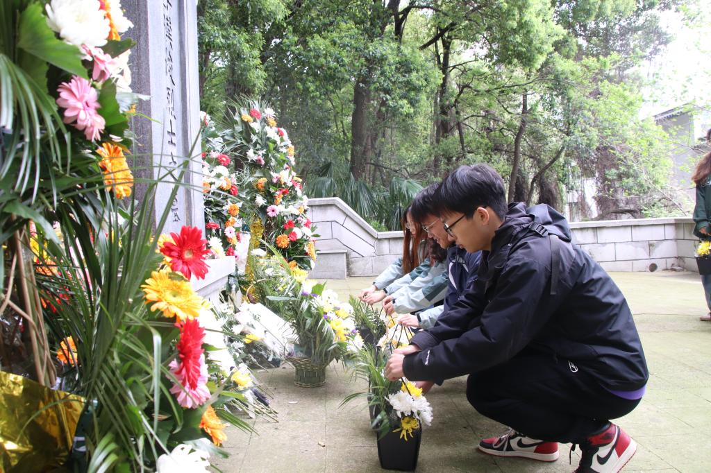 青松不老,英烈长眠。“我志愿加入中国共产党,拥护党的纲领,遵守党的章程......”铿锵有力的入党誓言在伏虎山烈士陵园声声响起,这是我院的学生骨干在烈士墓前的庄严宣誓。在伏虎山的苍松翠柏之间,革命先烈纪念碑巍然矗立,同学们整齐列队、肃立默哀,向纪念碑鞠躬行礼,深刻体悟着早期共产党人坚定理想、以身报国、忠于人民的伟大精神。最后,同学们一齐为先烈献上了自己亲手插制的花篮,借以表达对英雄前辈的缅怀之情。