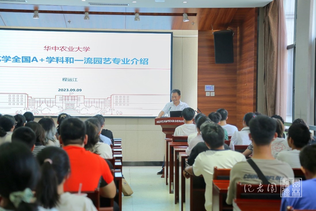 景园楼扇形教室报告厅内,副院长张斌为新生介绍了我校的历史、教学、科研和对未来的展望。从湖北农务学堂到华中农业大学,从恩施到武汉,我校风景园林专业经历了几十年的风风雨雨,实现了从无到有的宏伟发展。