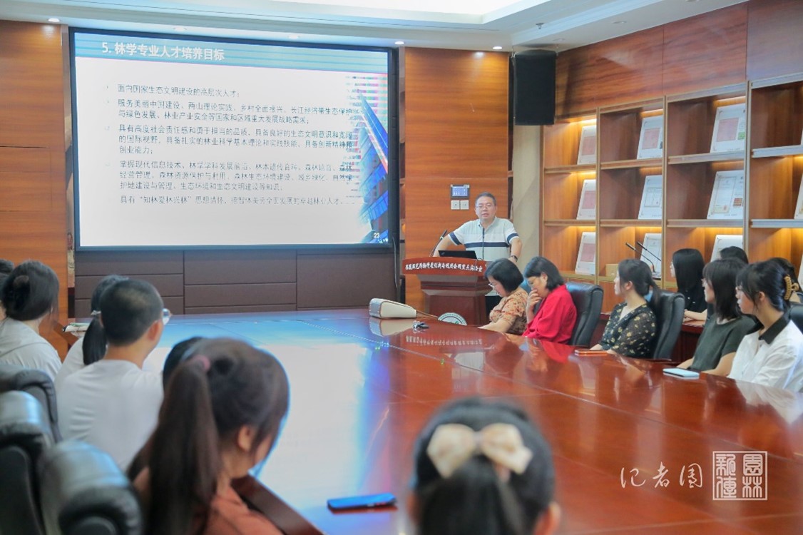 校党委书记、风景园林学科带头人高翅教授指出,从高中步入大学,同学们将开启一场全新的旅途,每个人要构建属于自己的“求真、崇善、尚美”的意义世界。高翅还叮嘱大家,想要学好风景园林专业,必须要有一颗爱自己、爱自然、爱生活、爱生命……爱宇宙间的一切美好的心。只有爱才能去发现美,创造美。高翅希望大家秉持“风景园林创造持续美好生活”的信念,保持对环境敏锐的观察和持续的好奇,在研学路上乘风破浪,越走越远。最后,围绕本次会议开展的主题——心,高翅留给同学们“文以载道、赏心悦目、赏心乐事、心旷神怡、触目惊心、触景生情、情景交融、景因境出”八个词语,希望大家在漫漫人生路上悟透其中真理,并祝愿每一位同学成为一名卓越的风景园林人,为实现国强山川美贡献出智慧和力量。
