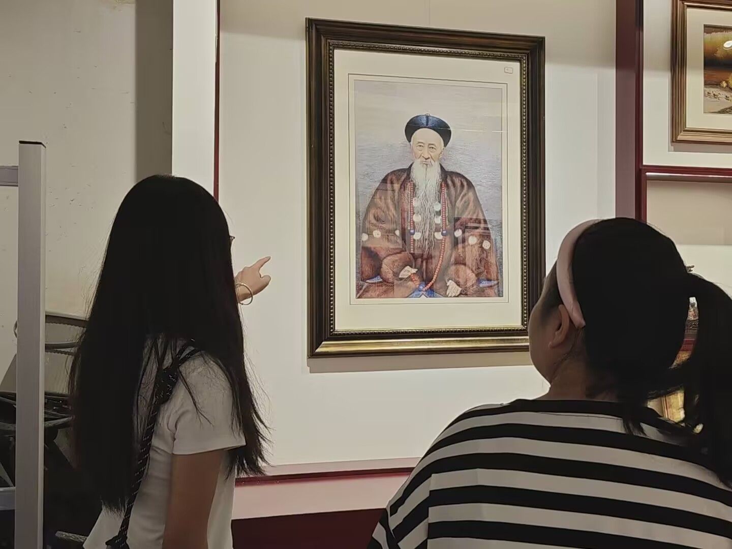 团队成员参观华中农业大学创始人张之洞先生的汉绣肖像作品
