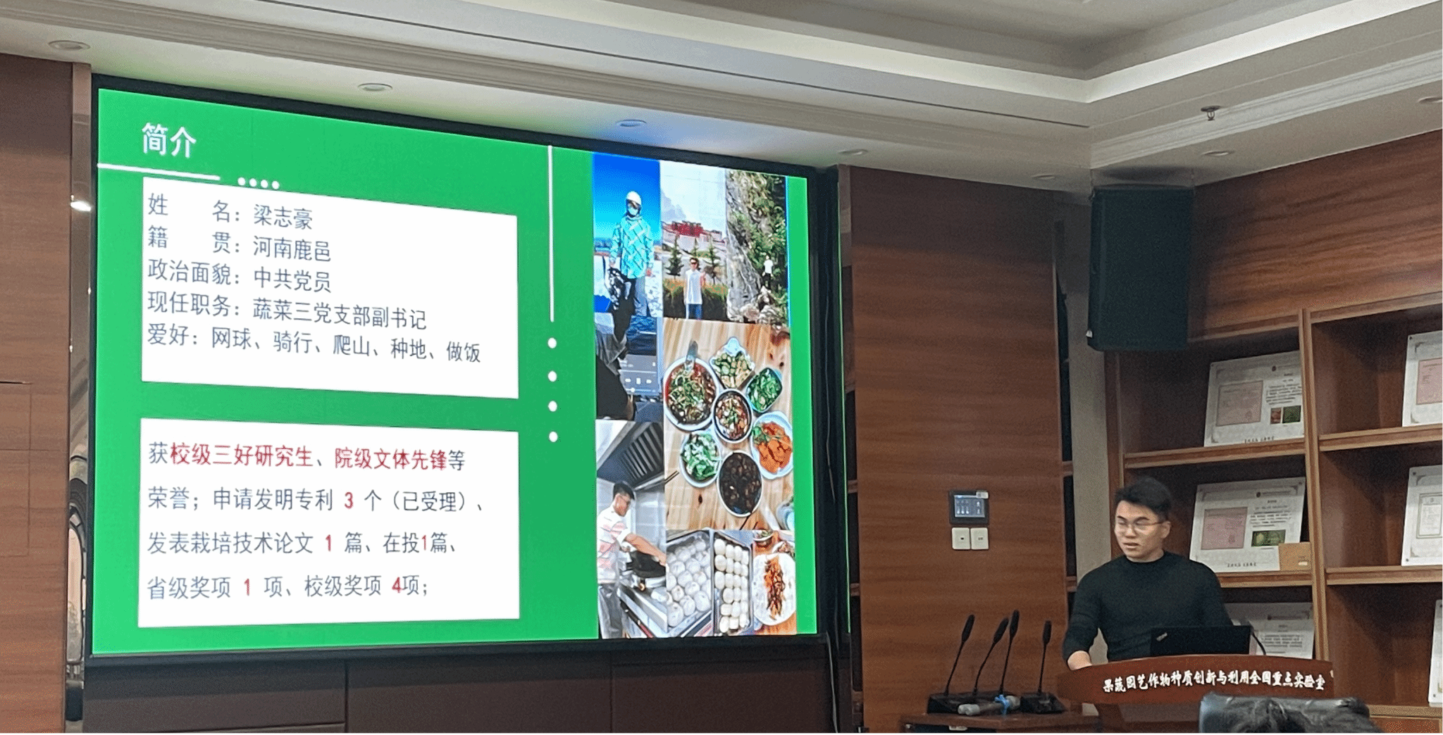 梁志豪,24级农艺与种业硕士,在分享中围绕“从实践中探寻问题,从科研中解决问题”这一主线,生动展现了他扎根产业一线的成长历程。在西藏山南的设施栽培调研中,他针对当地嫁接成活率低、育苗成本高等实际问题,主导或参与提出三项国家专利技术方案,将田间难题转化为创新成果。在贵州冬春季育苗实践中,他通过引进品种、优化技术,形成可推广的技术方案,相关实践被地方媒体报道,并获得省级技能大赛奖项。他以自身的实际行动告诉同学们:真正的科学问题,始终源于对生产实践的深入观察与系统思考。