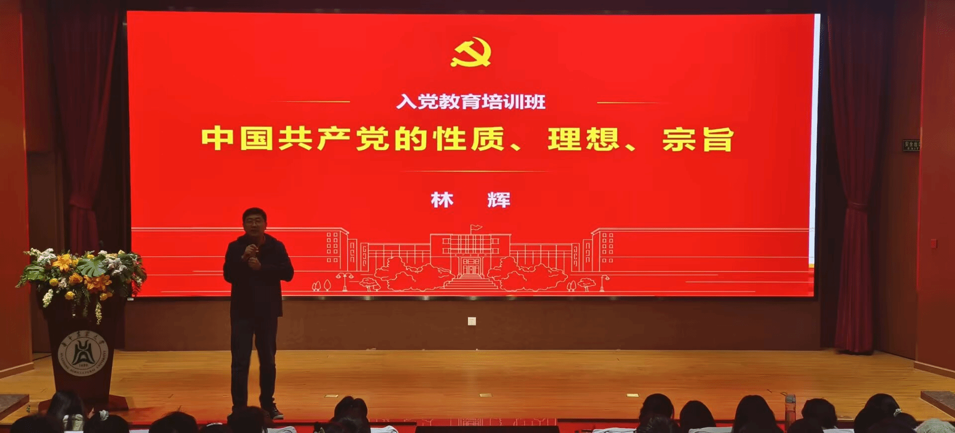 4月18日,学院开展入党教育专题党课,学院党委副书记林辉以“中国共产党的性质、理想、宗旨”为主题,为全院入党积极分子和青年团员带来一堂兼具理论深度与互动温度的党课。