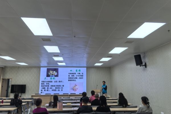 “各位爷爷奶奶们知道什么是花境吗?”活动开始,讲解员孙振远由一句话引出了本次活动的主要内容,为在场的爷爷奶奶介绍了花境的定义,并以春天花境的特点引出花境的季节性变化。随后,孙振远以春季常见的鲜花及其文化内涵为切入点,与爷爷奶奶进行互动。从明媚的樱花、桃花到寓意新生与满满活力的迎春花,在场的爷爷奶奶与讲解员积极交流,分享了大家对这些春季常见鲜花的见解与看法。